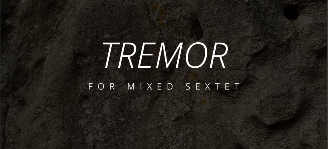 Written for a mixed sextet of flute, trumpet, electric guitar, harp, piano, and double bass, the music of TREMOR is centered around a series of large ensemble “impacts”, which are followed by ever-increasing periods of rhythmic reverberation and pulsation. These tremors grow in strength as the piece progresses, culminating in a chaotic and forceful overlapping “riff” which falls apart in the wake of several final impacts.